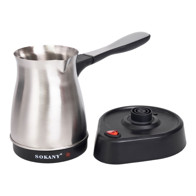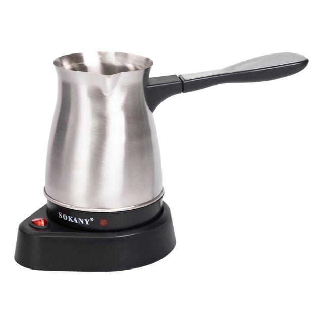 Превратите свой дом в уютную кофейню с электрической туркой Sokany. Это удобное и эффективное устройство предназначено для приготовления ароматных и насыщенных напитков. Эргономичная ручка и компактный размер делают турку удобной в использовании и хранении. Основные характеристики кофеварки высота: 17 см; мощность: 600 Вт; объем резервуара для воды: 500 мл; тип используемого кофе: молотый. Особенности и преимущества электро кофеварки С мощностью 600 Вт и электрической системой приготовления, кофе готовится быстро и легко, позволяя вам наслаждаться свежесваренным напитком в любое время. Элегантный и компактный дизайн турки Sokany подчеркивает стиль вашей кухни, а также обеспечивает удобное хранение. Изготовленная из высококачественных материалов, турка обеспечивает долгий срок службы и стойкость к повседневному использованию. Легкость в очистке и обслуживании делает использование этой турки максимально удобным. Привнесите атмосферу настоящей кофейни в свой дом с помощью кофеварки Sokany, и погрузитесь в мир ароматного кофе, который вы создаете сами.