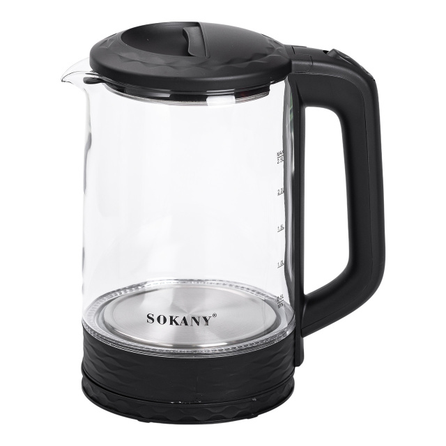 Электрочайник Sokany - это надежное и функциональное устройство для быстрого кипячения воды, которое станет незаменимым ассистентом в вашей ежедневной жизни. Благодаря мощности 1500 Вт, он обеспечивает быстрый и эффективный нагрев воды, что позволяет вам экономить время и наслаждаться свежими напитками в любое время. Характеристики прозрачного чайника с подсветкой чайник 2.5 литра; мощность: 1500 Вт; размер 20х14х24 см; дисковый нагревательный элемент; автоматическое выключение; защита от перегрева. С большим объемом 2.5 литра, электрочайник Sokany идеально подходит для приготовления кофе, чая и других горячих напитков для всей семьи или гостей. Его удобная ручка позволяет легко наливать воду и комфортно использовать устройство. Кроме того, стеклянный электрочайник Sokany имеет встроенную защиту от перегрева и автоматическое выключение, что обеспечивает безопасность использования и долговечность устройства. Его стильный и эргономичный дизайн дополнит любую кухню, придавая ей современный вид и функциональность.