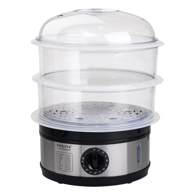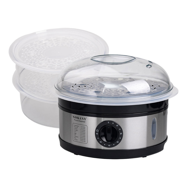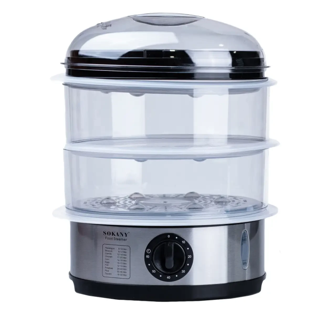 Пароварка электрическая трехуровневая 650 Вт 11 л с таймером и защитой от перегрева Sokany SK-07018