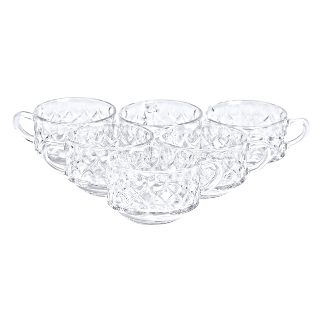 Набор стеклянных чашек станет прекрасным дополнением к любой сервировке благодаря своей элегантной простоте и универсальности. Изготовлены из высококачественного термостойкого стекла, чашки безопасны для использования в посудомоечной машине, что делает их легкими в уходе и обслуживании. Вы можете быть уверены, что они сохранят свой блеск и прозрачность даже после многократного мытья. Характеристики набора чашек количество чашек в наборе - 6 штук; объем чашки 270 мл; высота чашки 6 см; верхний диаметр 9 см; нижний диаметр 5 см; материал - стекло. Благодаря удобной форме чашки комфортно лежат в руке, а прочное стекло обеспечивает устойчивость к ежедневному использованию. Изделия гармонично сочетаются с любой сервировкой и могут использоваться как в быту, так и в кафе или ресторанах. Материал легко очищается, не впитывает запахи и не меняет вкус напитков. Чашки можно мыть вручную или в посудомоечной машине