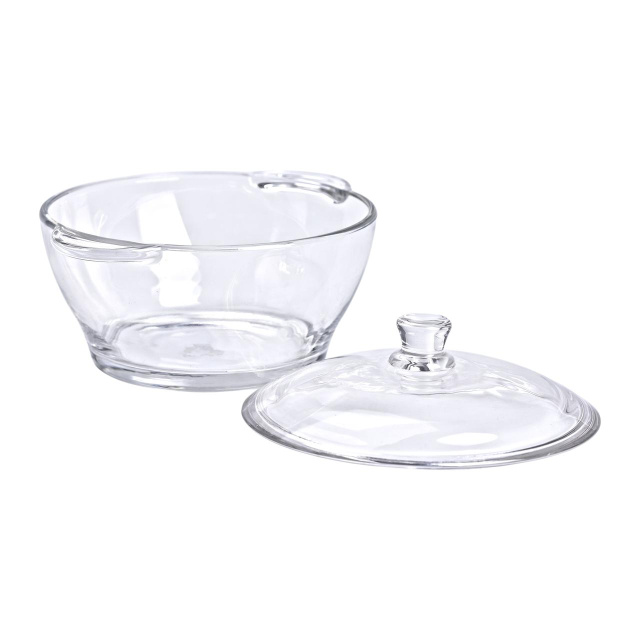 Стеклянная супница с крышкой сочетает в себе классический дизайн и современный стиль, что делает его идеальным выбором для любого стола. Супница имеет удобную форму и оптимальный объем 1 литр, что позволяет комфортно подавать блюда для всей семьи или гостей. Стеклянная поверхность легко очищается, что обеспечивает простоту в уходе и сохранение первоначального вида на долгие годы. Основные характеристики посуды супницы объем 1 литр; диаметр 15.5 см; размер 19×16×12 см. Изготовленная из высококачественного стекла, бульонница отлично сохраняет тепло ваших любимых супов и других горячих блюд. Купить супницу с ручками можно с доставкой по всей Украине.