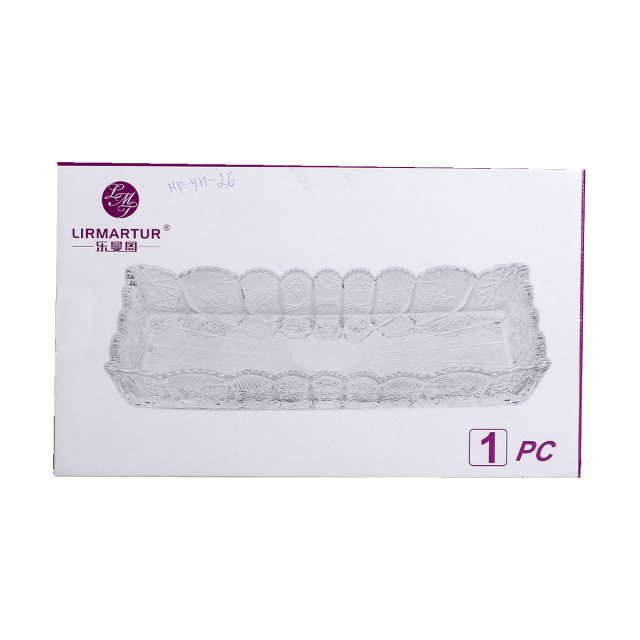 Прямоугольное стеклянное Блюдо для закусок - стильное и практичное решение для подачи свежих фруктов или других закусок. Его элегантный прямоугольный дизайн добавляет современного вида сервировке, делая ее универсальным выбором для любого праздничного или повседневного стола. Прозрачное стекло позволяет красиво демонстрировать фруктовую композицию, подчеркивая яркость и натуральную красоту продуктов. Основные характеристики: Материал: стекло; Размер: 28.6х16.5х3 см; Форма: прямоугольная. Блюдо для закусок идеально подходит для использования на праздничных мероприятиях, семейных обедах или как декоративный элемент на журнальном столике. Легкость в уходе и стильный вид делают ее не только практичной, но и привлекательной частью любого интерьера. Благодаря своей форме и размерам, это блюдо позволяет разместить на ней разнообразные закуски, добавляя вашему столу элегантности и свежести.