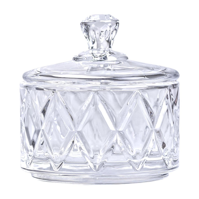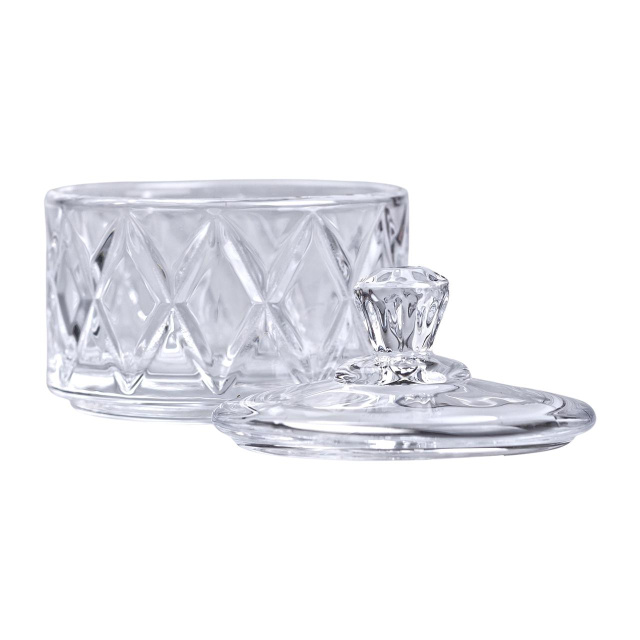 Конфетница с крышкой из стекла — это элегантный и стильный аксессуар для хранения сладостей или небольших угощений. Изготовленная из высококачественного хрусталя, она отличается непревзойденным блеском и изысканным дизайном, придавая интерьеру особую элегантность. Прозрачное стекло не только позволяет легко просматривать содержимое, но и создает ощущение легкости и утонченности. Основные характеристики: Материал: стекло; Диаметр: 6.5 см; Высота: 7 см. Эта конфетница идеально подходит для сервировки на праздничных мероприятиях или для хранения мелких сладостей в повседневной жизни. Крышка помогает сохранять свежесть продуктов, делая изделие практичным и удобным в использовании. Такой аксессуар станет отличным подарком, совмещая в себе функциональность и эстетику. Небольшая и изящная, эта конфетница станет прекрасным дополнением к вашему домашнему декору, добавляя нотки элегантности и стиля.