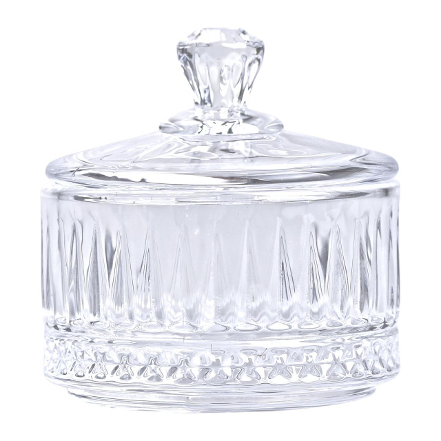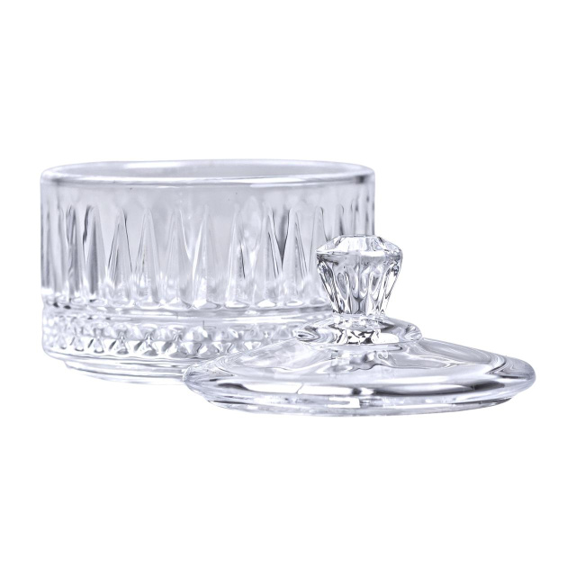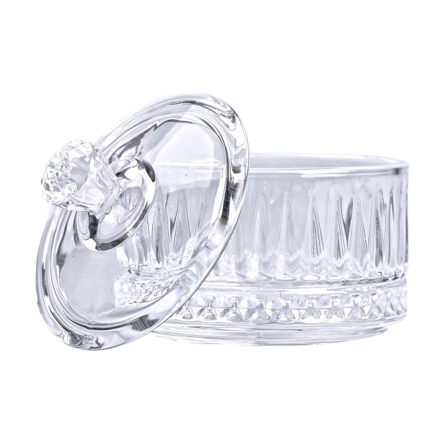 Конфетница из толстого стекла с крышкой — это надежный и элегантный аксессуар для хранения сладостей или других небольших угощений. Ее прочное стекло обеспечивает дополнительную устойчивость и долговечность, а классический дизайн делает изделие универсальным для любого интерьера. Прозрачное стекло позволяет легко видеть содержимое, а стильная крышка гарантирует надежное хранение и свежесть продуктов. Эта конфетница станет отличным выбором для сервировки сладостей на праздничных мероприятиях или для повседневного использования дома. Благодаря прочному материалу и удобной крышке, она прослужит вам долго, добавляя элегантность и порядок в домашний декор. Основные характеристики: Материал: стекло; Диаметр: 6.5 см; Высота: 7 см. Практичные размеры и изысканный внешний вид позволяют использовать ее в любом помещении, а также дарить близким в качестве стильного и функционального подарка.