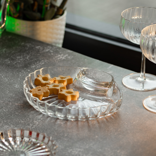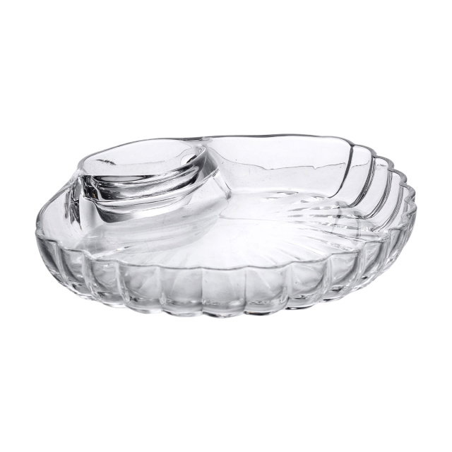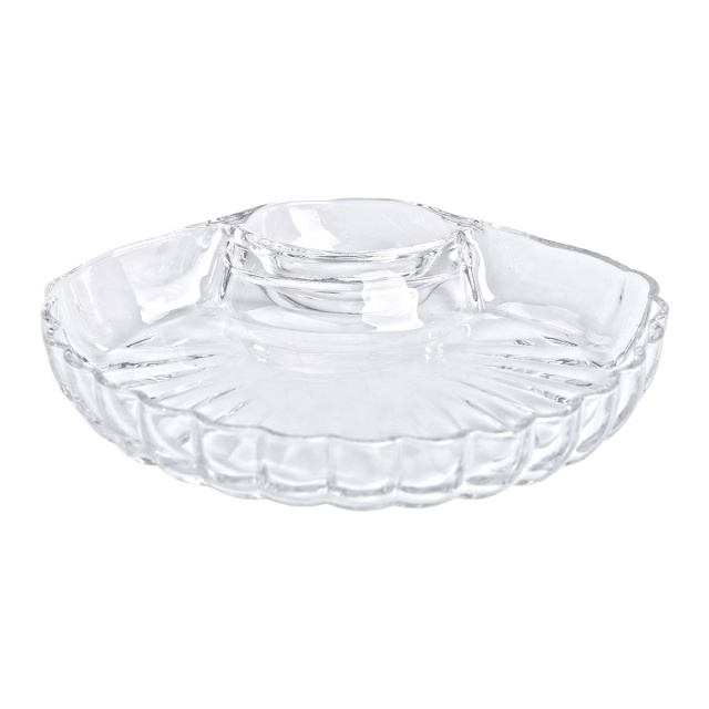 Блюдо для закусок с соусником – это стильное и практичное решение для сервировки разнообразных закусок, холодных блюд или десертов. Ее классический круглый дизайн и встроенный соусник придают элегантности любому столу. Размер тарелки позволяет разместить достаточное количество закусок для нескольких человек. Основные характеристики: Материал: стекло; Размер: 21х19х3 см; Встроенный соусник для удобства подачи соусов и дипов. Входящий в комплект соусник идеально дополняет тарелку, позволяя подавать соусы или дипы без необходимости использовать отдельные сосуды. Это придает удобства и повышает эстетичность сервировки. Тарелка является отличным выбором для любого события, от семейных обедов до праздничных приемов.
