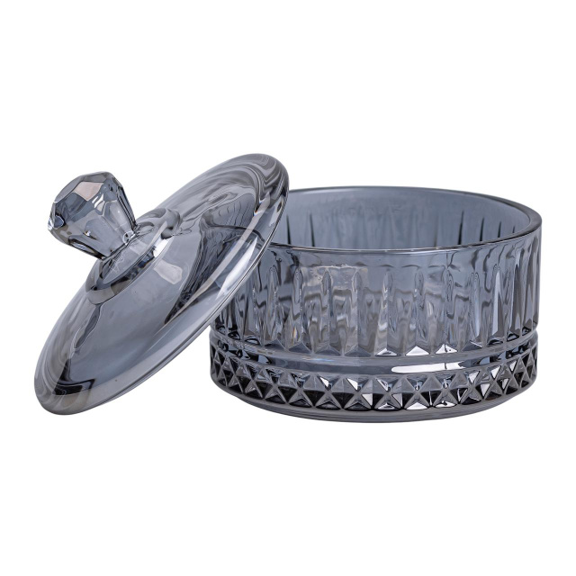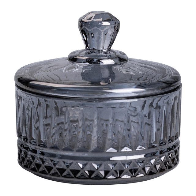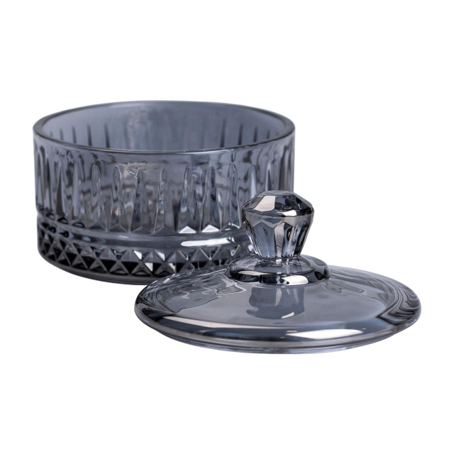 Конфетница стеклянная серая с крышкой станет изысканным дополнением для любого стола или кухонного интерьера. Благодаря компактному размеру и элегантному дизайну, она идеально подходит для хранения конфет, орехов или других мелких сладостей. Крышка позволяет сохранять содержимое защищенным от пыли и загрязнений, поддерживая свежесть и чистоту. Серый цвет делает это изделие универсальным для сочетания с разными стилями интерьера. Основные характеристики: Материал: стекло; Диаметр: 10 см; Высота: 10 см. Эта конфетница – это не только практичный аксессуар, но и элемент декора, который придаст стильный вид любому столу или полке. Она отлично подходит для использования в домашних условиях или на праздничных мероприятиях, даря атмосферу элегантности. Компактные размеры конфетницы позволяют разместить ее в любом месте, не занимая много пространства, при этом она остается функциональной и привлекательной.