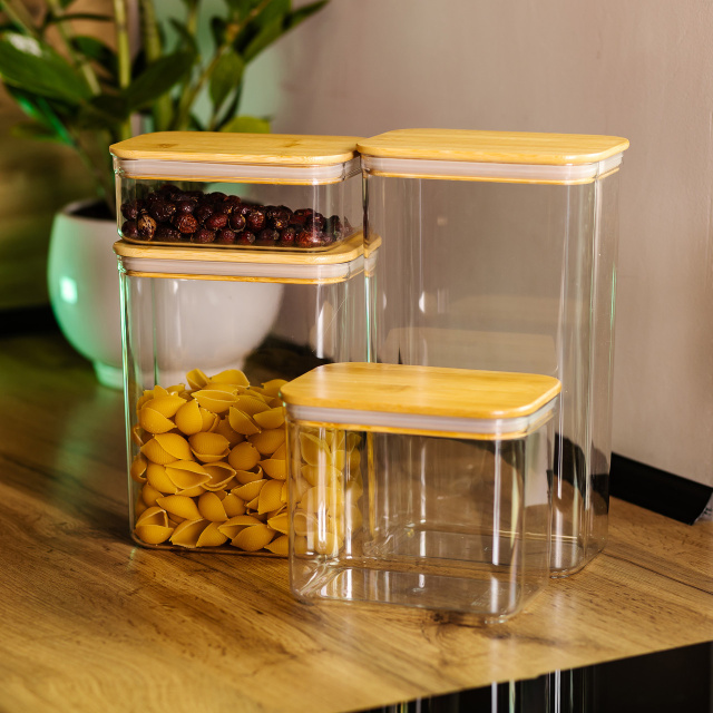 Набор емкостей для хранения продуктов - это практичное и стильное решение для организации кухонного пространства. Каждая емкость изготовлена из высококачественного прозрачного пластика, что позволяет легко видеть содержимое, обеспечивая удобство в пользовании. Благодаря современному дизайну, эти контейнеры гармонично вписываются в любой интерьер кухни. Основные характеристики: Количество емкостей: 4 штук; Объем емкостей: 0.75 л | 1.7 л | 2.7 л | 3.7 л; Высота емкостей: 6.5 см | 13.5 см | 20.5 см | 27.5 см; Материал: прозрачный пластик; Крышки: бамбуковые с силиконовыми уплотнителями. Особенностью набора являются бамбуковые крышки, придающие емкостям натуральный и экологичный вид. Крышки оснащены силиконовыми уплотнителями, которые обеспечивают герметичность, сохраняя свежесть продуктов на долгое время. Емкости идеально подходят для хранения круп, специй, орехов, сухофруктов или других продуктов, а также предотвращают попадание влаги или посторонних запахов. Благодаря четырем емкостям разного объема, этот набор позволяет максимально организовать хранение, упорядочивая все необходимые ингредиенты. Простота ухода за контейнерами делает их удобными в использовании, а их стильный вид дополнит вашу кухню функциональностью и эстетикой.