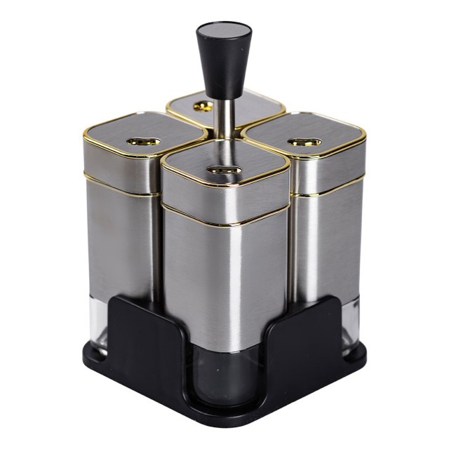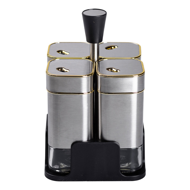 Набор баночек для специй из 4 штук на подставке – это стильный и функциональный аксессуар для организации специй на кухне. Баночки выполнены из стекла, что позволяет легко видеть содержимое, а металлические крышки обеспечивают герметичность, предотвращая потерю аромата специй и проникновение влаги. Основные характеристики: Количество баночек: 4 штуки. Размер набора: 10х10х17 см; Объем баночек: 120 мл; Диаметр баночек: 4.5 см; Материал баночек: стекло+метал; Материал крышек: пластик; Назначение: для хранения специй, соли, перца, трав. Подставка, изготовленная из пластика, обеспечивает удобство хранения баночек, делая набор компактным и удобным для размещения даже в небольших просторах. Ее дизайн гармонично вписывается в современные кухонные интерьеры, добавляя эстетики и практичности. Легкая в уходе подставка обеспечивает стойкость и элегантность. Этот набор станет отличным решением для организации специй на дому или подарком для любителей кулинарии. Высокое качество материалов и продуманный дизайн делают набор надежным и удобным в использовании.