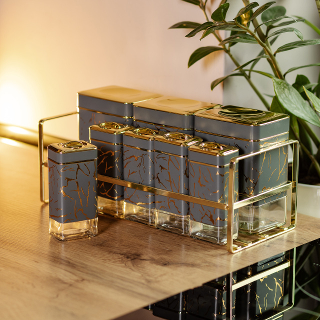 Набор для специй на подставке с крышками – это не только удобный и практичный аксессуар для вашей кухни, но и настоящее украшение интерьера....