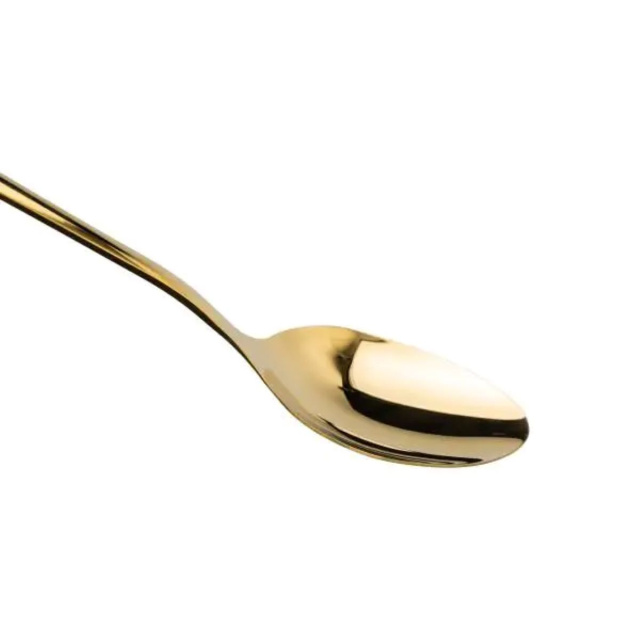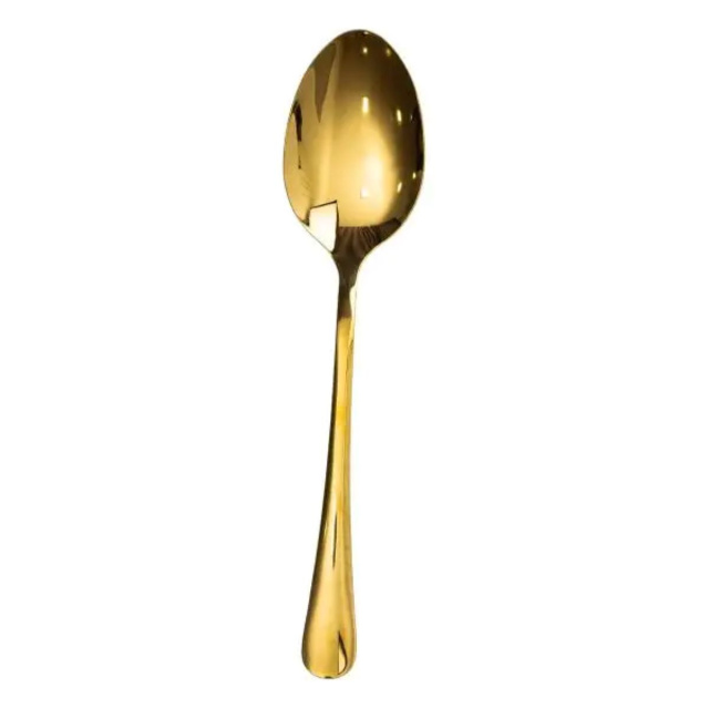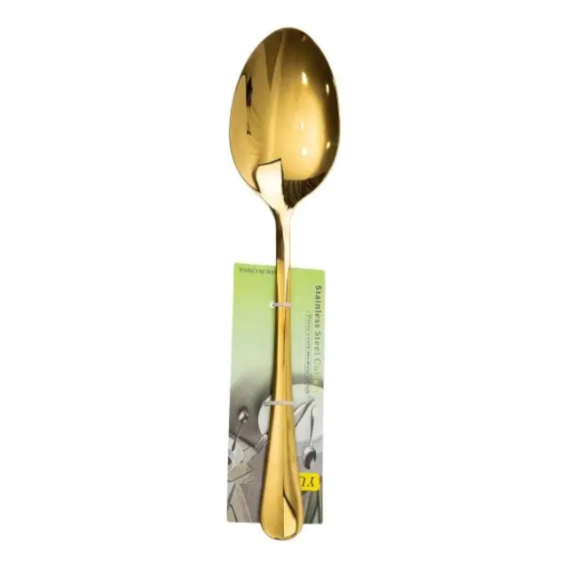 Сервировочная ложка золотистая из нержавеющей стали - это элегантный и функциональный аксессуар для сервировки стола. Изготовленная из высококачественной нержавеющей стали, она имеет прочную конструкцию, устойчивую к коррозии и износу. Золотистое покрытие придает ложке роскошный вид, что делает ее идеальным выбором как для повседневного использования, так и для торжественных событий. Основные характеристики: Длина: 26.5 см.; Материал: нержавеющая сталь; Упаковка: пакет. Благодаря эргономичному дизайну, ложка удобно лежит в руке и обеспечивает комфорт при подаче различных блюд. Ее зеркальная полировка добавляет изысканного блеска, а гладкая поверхность легко очищается от остатков пищи. Оптимальные размеры позволяют удобно сервировать горячие и холодные блюда, салаты или гарниры. Такой стильный столовый аксессуар станет прекрасным дополнением к любому набору посуды, добавляя сервировке особого шарма и элегантности. Ложка прекрасно сочетается с другими золотистыми столовыми приборами, создавая гармоничный вид на праздничном или повседневном столе.
