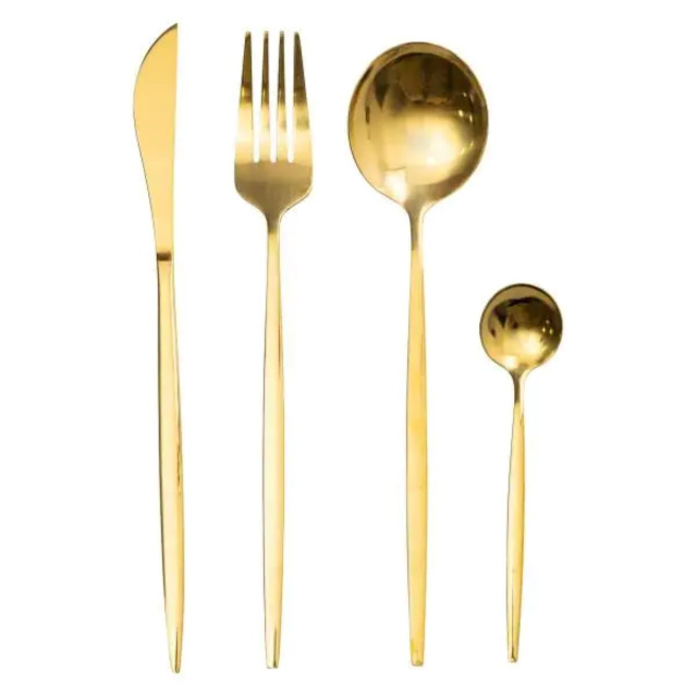 Набор столовых приборов состоит из 24 предметов, рассчитанных на обслуживание 6 персон. В комплект входят 6 столовых ложек, 6 чайных ложек, 6 вилок и 6 столовых ножей. Все элементы выполнены в серебристом цвете, что придает им классический и универсальный вид. Основные характеристики: Количество предметов в наборе: 24 шт.; Количество персон: 6; Материал: нержавеющая сталь; Упаковка: коробка; Размеры приборов: длина столового ножа: 22.5 см; длина столовой ложки: 20.8 см; длина столовой вилки: 21.5 см; длина чайной ложки: 12.8 см. Комплектация набора: столовый нож: 6 шт.; столовая ложка: 6 шт.; столовая вилка: 6 шт.; чайная ложка: 6 шт.. Материал изготовления обеспечивает устойчивость к механическим повреждениям и коррозии, что способствует длительному использованию. Поверхность приборов гладкая, без лишних декоративных элементов, что облегчает уход и очистку. Эргономичная форма ручек способствует удобному расположению в руке во время использования. Комплект может использоваться как для повседневного применения, так и для сервировки праздничного стола. Универсальность дизайна позволяет сочетать его с различными стилями посуды и текстиля. При правильном уходе столовые приборы сохраняют свой первоначальный вид на протяжении длительного времени.