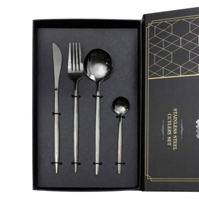 Набор столовых приборов 24 предмета набор ложек вилок и ножей на 6 персон Черный HP-20-45