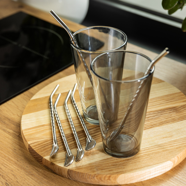 Набор витых ложек с трубочками для напитков – стильное и удобное решение для любителей напитков. Этот комплект из 6 предметов сочетает в себе функции ложки и трубочки, позволяя не только перемешивать напитки, но и пить их с комфортом. Он идеально подходит для соков с мякотью, коктейлями, чаем, смузи и другими напитками, делая процесс их употребления комфортным и приятным. Основные характеристики : Количество предметов в наборе: 7 (6 ложек-трубочек, щеточка для мытья); Материал: нержавеющая сталь; Размеры : длина ложек : 19.5 см; длина щетки : 20 см. Ложки-трубочки изготовлены из нержавеющей стали, что обеспечивает их прочность, устойчивость к хранению и хранению. Полированная поверхность придает им эстетичный вид и способствует очистке, а скрученная ручка обеспечивает удобный захват, предотвращающий Благодаря универсальному дизайну и стандартному размеру эти ложки прекрасно сочетаются с другими барными аксессуарами. Они легко моются как вручную, так и в посудомоечной машине.