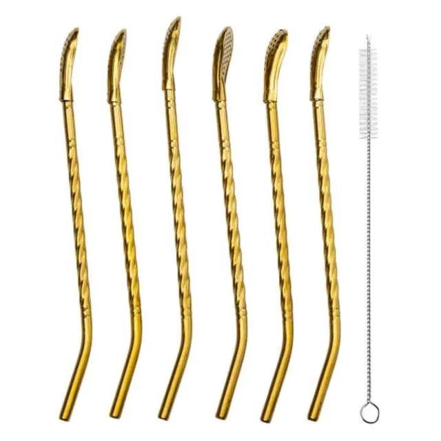 Набор витых ложек с трубочками для напитков – стильное и удобное решение для любителей напитков. Этот комплект из 6 предметов сочетает в себе функции ложки и трубочки, позволяя не только перемешивать напитки, но и пить их с комфортом. Он идеально подходит для соков с мякотью, коктейлями, чаем, смузи и другими напитками, делая процесс их употребления комфортным и приятным. Основные характеристики : Количество предметов в наборе: 7 (6 ложек-трубочек, щеточка для мытья); Материал: нержавеющая сталь; Размеры : длина ложек : 19.5 см; длина щетки : 20 см. Ложки-трубочки изготовлены из нержавеющей стали, что обеспечивает их прочность, устойчивость к хранению и хранению. Полированная поверхность придает им эстетичный вид и способствует очистке, а скрученная ручка обеспечивает удобный захват, предотвращающий Благодаря универсальному дизайну и стандартному размеру эти ложки прекрасно сочетаются с другими барными аксессуарами. Они легко моются как вручную, так и в посудомоечной машине.