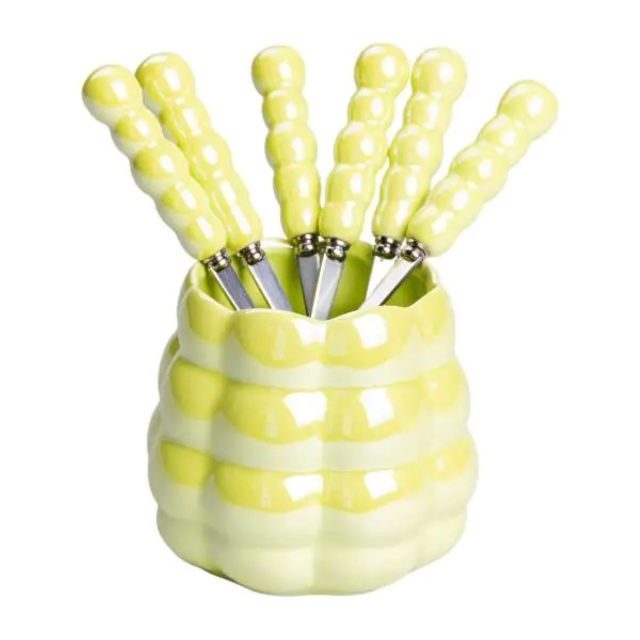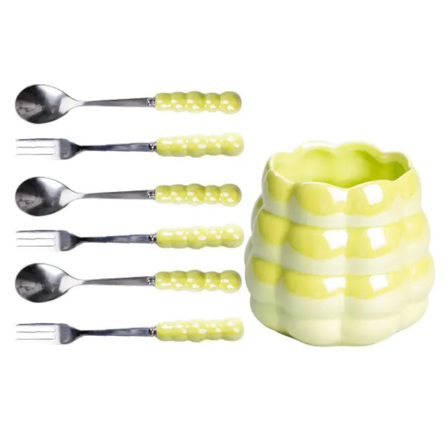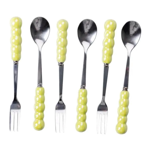 Набор десертных вилок и ложек на 3 персоны с подставкой из фарфора 7 предметов Зеленый HP-20-58