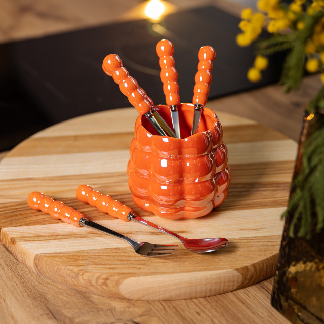 Набор десертных вилок и ложек на 3 персоны с подставкой из фарфора 7 предметов Оранжевый HP-20-60