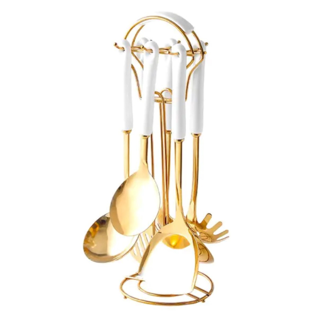 Набор кухонных принадлежностей на подставке 7 предметов кухонные аксессуары на подставке Белый с золотом HP-20-65