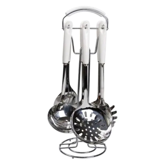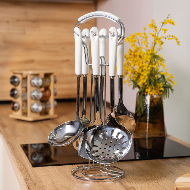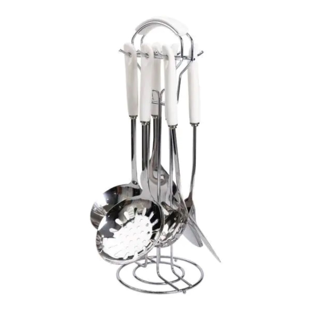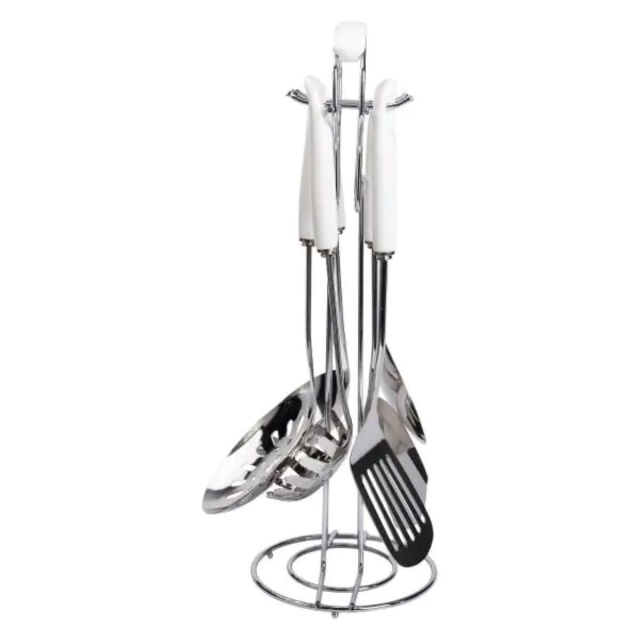 Набор кухонных принадлежностей на подставке 7 предметов кухонные аксессуары на подставке Белый с серебристым HP-20-70