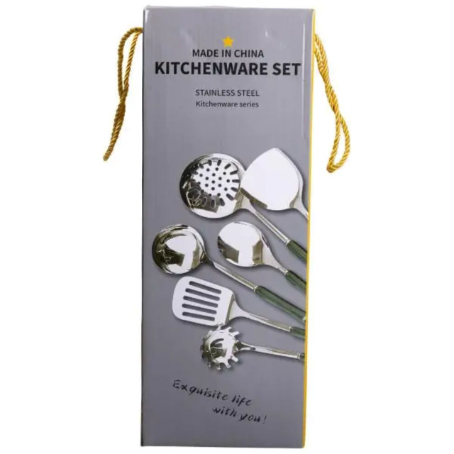 Набор кухонных принадлежностей состоит из семи предметов, изготовленных из нержавеющей стали. Рабочие части изделий обеспечивают устойчивость к коррозии и износостойкость во время использования. Керамические ручки выполнены в классическом стиле и обеспечивают удобный хват. Основные характеристики: Количество предметов в наборе: 7 шт.; Материал приборов: нержавеющая сталь, керамика. Размеры: высота лопатки: 34 см; высота лопатки с прорезью: 35 см; высота шумовки: 34.5 см; высота половника: 31.5 см; высота шумовки для спагетти: 30.5 см; высота ложки: 26.5 см. В комплект входят основные кухонные инструменты, необходимые для приготовления и подачи блюд. Форма и размер каждого предмета адаптированы для эффективного использования, а гладкая поверхность способствует легкому уходу. Конструкция ручек предусматривает прочное соединение с металлической частью, что повышает надежность приборов. Набор дополнен металлической подставкой, которая позволяет удобно организовать хранение предметов. Компактное расположение инструментов на подставке способствует экономии места на кухне и обеспечивает быстрый доступ к необходимому прибору во время приготовления пищи.