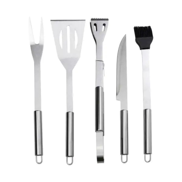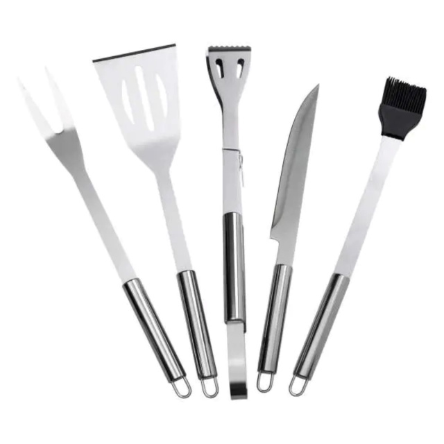 Набор аксессуаров для барбекю состоит из 5 предметов, изготовленных из нержавеющей стали. Материал обеспечивает прочность, устойчивость к высоким температурам и коррозии, что делает изделия пригодными для использования на открытом воздухе. Гладкая поверхность облегчает очистку после приготовления пищи. Основные характеристики: Размеры набора: 40х10х5 см; Длина приборов: 35 см; Количество предметов в наборе: 5; Материал: нержавеющая сталь. Комплектация: Нож; Лопатка; Вилка для мяса; Щипцы; Кисточка силиконовая. В комплект входят основные инструменты, необходимые для приготовления барбекю. Эргономичная форма обеспечивает удобство в использовании, а оптимальная длина ручек позволяет работать с горячими продуктами на безопасном расстоянии. Конструкция изделий предусматривает надежность соединения ручек с рабочими частями, что повышает долговечность приборов. Набор укомплектован чехлом из ткани для удобной транспортировки и хранения. Компактный формат позволяет легко переносить приборы и хранить их в упорядоченном виде, что особенно удобно для выездов на природу, пикников и кемпинга.