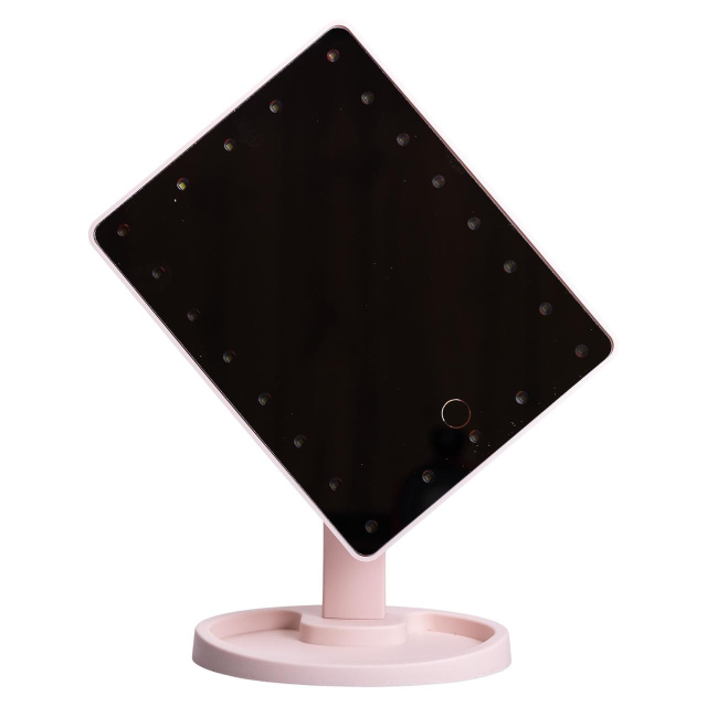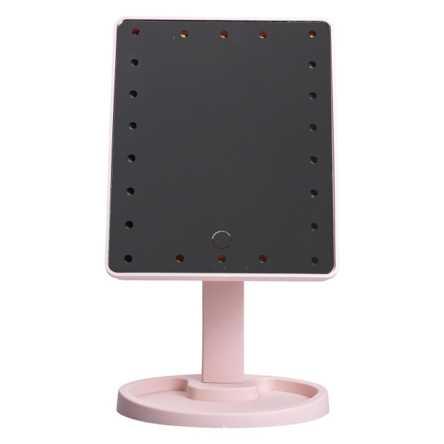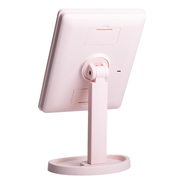 Настольное зеркало с подсветкой 22 LED для макияжа 21х16 см прямоугольное на ножке USB Розовое HP-10-4AP