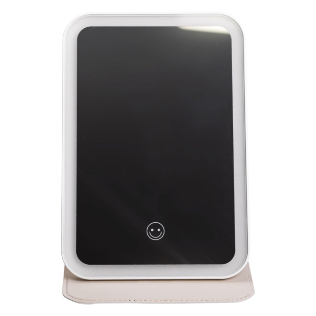 Складное настольное светодиодное зеркало для макияжа оснащено сенсорным датчиком, позволяющим удобно регулировать яркость подсветки. Благодаря компактному складному дизайну оно занимает минимум места и подходит для использования как дома, так и в путешествиях. Светодиодное освещение равномерно распределяется по периметру зеркала, обеспечивая четкое отображение без теней. Основные характеристики: Размер с подставкой: 20.5х13.5х2 см; Размер зеркала: 19.5х13.5 см; Толщина: 1 см; Материал: пластик+чехол эко кожа; Подсветка: светодиодная; Питание: USB. Регулировка яркости осуществляется легким прикосновением к сенсорной панели, что позволяет подстроить освещение под различные условия. Зеркало обеспечивает естественное отражение, помогая точно наносить макияж или выполнять косметические процедуры. Благодаря устойчивому основанию оно надежно размещается на любой ровной поверхности. Современный дизайн и высокая функциональность делают это зеркало практичным аксессуаром для ежедневного использования. Прочная конструкция и энергоэффективные светодиоды гарантируют долговечность изделия. Это оптимальное решение для профессионального макияжа и ухода за кожей.