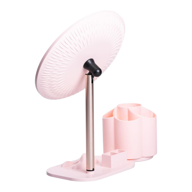 Косметическое зеркало с LED подсветкой изготовлено из стекла и пластика, что обеспечивает его легкость и прочность. Светодиодное освещение равномерно распределяет свет, создавая комфортные условия для нанесения макияжа или ухода за кожей. Благодаря компактному дизайну зеркало подходит для использования дома или в дороге. Основные характеристики: Размер с подставкой: 28х12х31 см; Диаметр зеркала: 21 см; Толщина: 1.5 см; Материал: пластик; Подсветка: светодиодная; Сетевой адаптер: кабель; Питание: USB. Сенсорный выключатель позволяет легко управлять подсветкой одним касанием. Некоторые модели поддерживают регулировку яркости, что позволяет подстраивать освещение в соответствии с окружающими условиями. Светодиоды имеют длительный срок службы и минимальное энергопотребление. Современный дизайн и удобная конструкция делают зеркало стильным и функциональным аксессуаром. Благодаря сочетанию стекла и пластика оно отличается устойчивостью к повреждениям и простотой в уходе. Практичное решение для повседневного использования и профессионального макияжа.