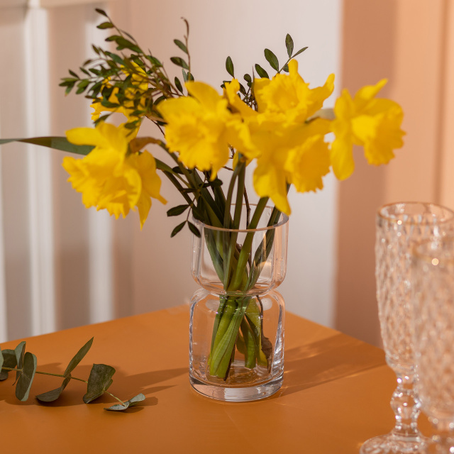 Декоративная стеклянная ваза в форме песочных часов выполнена из прозрачного стекла высокого качества. Ее уникальная форма создает эффект плавного перехода между двумя узкими частями, что придает изделию элегантный вид. Высота и диаметр вазы делают ее идеальной для создания стильных цветочных композиций. Основные характеристики: Материал: стекло; Объем: 600 мл; Диаметр: общий - 8 см, верхний - 7 см, нижний - 7.5 см; Высота: 15 см; Глубина: 14 см. Эта ваза привлекает внимание благодаря своему оригинальному дизайну, который сочетает классические и современные элементы. Прозрачное стекло позволяет четко рассмотреть цветочные аранжировки, при этом не отвлекая внимание от самих растений. Для ухода за вазой рекомендуется использовать мягкие моющие средства, избегая абразивных материалов, чтобы сохранить ее поверхность без царапин. Очищать вазу лучше всего вручную, что позволяет сохранить ее в первоначальном виде на длительное время.