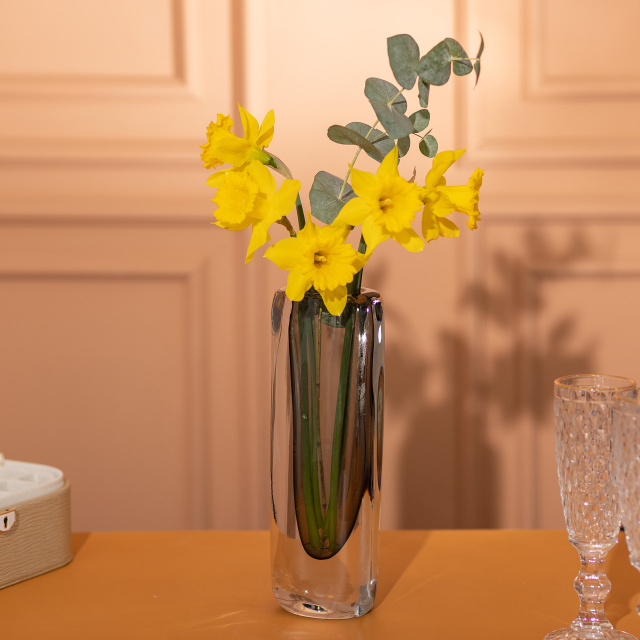 Стеклянная ваза в стиле минимализм выполнена из прозрачного стекла высокого качества. Ее дизайн отличается простотой и лаконичностью, без лишних деталей, что делает ее универсальной для различных интерьеров. Высота вазы составляет 24.5 см, что позволяет использовать ее для цветов среднего размера или как элемент декора. Основные характеристики: Материал: стекло; Объем: 200 мл; Размер: 7.7х5.5х24.5 см; Размер горлышка: 5.5х2 см; Размер основания: 7х5.5 см; Глубина: 17 см. Минималистичный стиль вазы подчеркивает чистоту форм и функциональность, сосредотачивая внимание на цветочных композициях или других декоративных элементах. Прозрачное стекло позволяет создать элегантный акцент без лишних украшений. Для ухода за вазой рекомендуется использовать мягкие моющие средства и избегать абразивных материалов, чтобы сохранить ее гладкую поверхность. Очистка вручную поможет сохранить ее в первоначальном виде.
