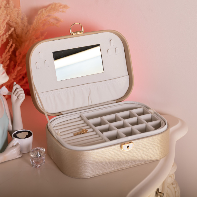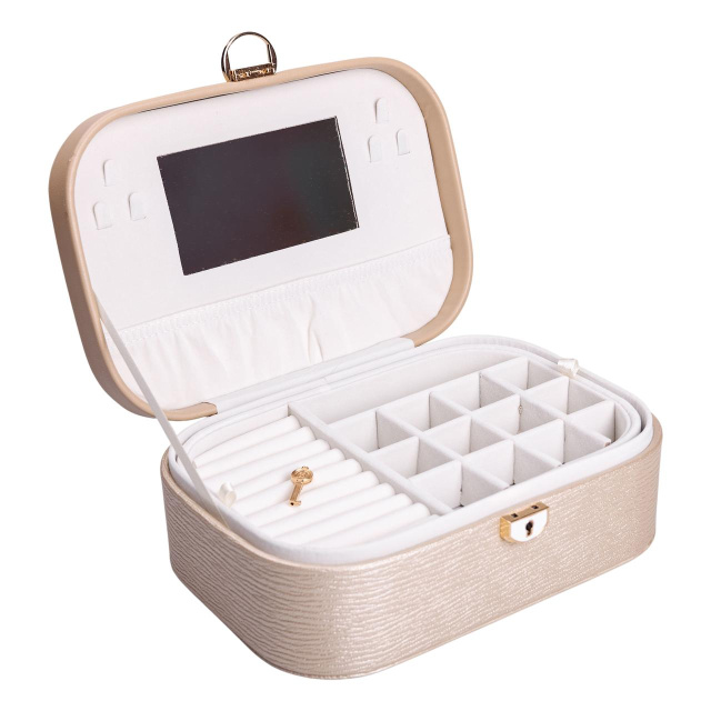 Шкатулка для украшений из эко кожи 2 яруса с замком органайзер для ювелирных изделий HP-5-1CR