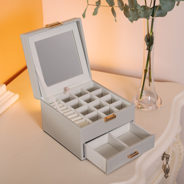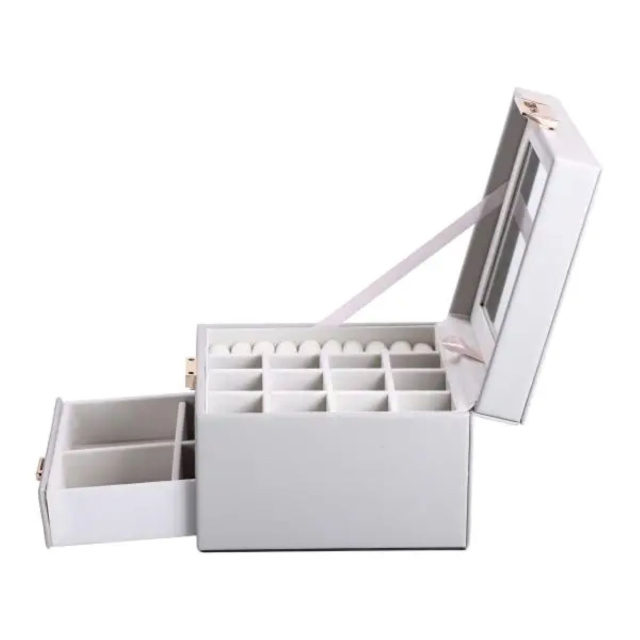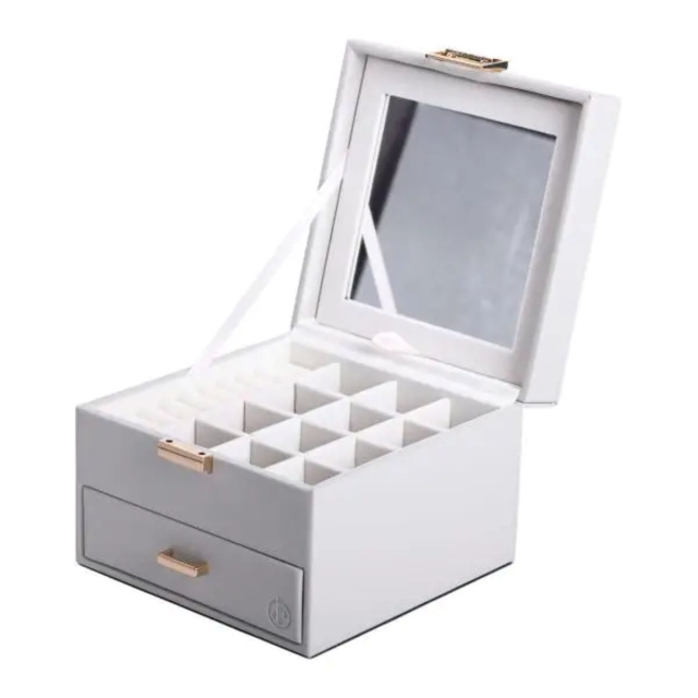 Шкатулка для украшений из эко кожи, 2 яруса – идеальный органайзер для бережного хранения ваших ювелирных изделий. Компактный и функциональный дизайн с размерами 16×16×12 см обеспечивает удобство использования и легкость хранения. Выполненная из качественной эко кожи, эта шкатулка станет стильным дополнением любого интерьера, сочетая в себе практичность и элегантность. Основные характеристики органайзера для хранения бижутерии размеры шкатулки для украшений 16×16×12 см; количество ярусов - 2 шт; количество отсеков - 17 шт; материал корпуса - экокожа; внутреннее покрытие - велюр; зеркало в комплекте. Шкатулка оборудована двумя вместительными ярусами, предлагающими 17 разнообразных отсеков. Это позволяет аккуратно разместить кольца, серьги, цепочки, браслеты и другие украшения, предотвращая их повреждения и спутывание. Внутреннее покрытие из мягкого велюра обеспечивает дополнительную защиту от царапин и повреждений. Основные преимущества шкатулки для украшений из эко кожи Экологичная кожа приятна на ощупь, долговечна и устойчива к внешним повреждениям, а велюровое покрытие внутри бережно хранит драгоценности и предотвращает появление царапин. Благодаря 17 отдельным отсекам и двум просторным ярусам, все украшения аккуратно размещены и всегда находятся под рукой. Современное исполнение и сдержанные цвета органично вписываются в любой интерьер, превращая органайзер в стильный элемент декора. Встроенное зеркало добавляет функциональности и облегчает выбор украшений. Отличное решение для подарка по любому поводу: День рождения, 8 марта, годовщина, День святого Валентина или Новый год. Дополнительным преимуществом модели является встроенное зеркало, удобное для примерки украшений и ухода за собой. Шкатулка из эко кожи отлично подходит в качестве подарка на любой праздник, а также будет полезным приобретением для личного использования. Купить шкатулку для ювелирных изделий можно с доставкой по всей Украине.