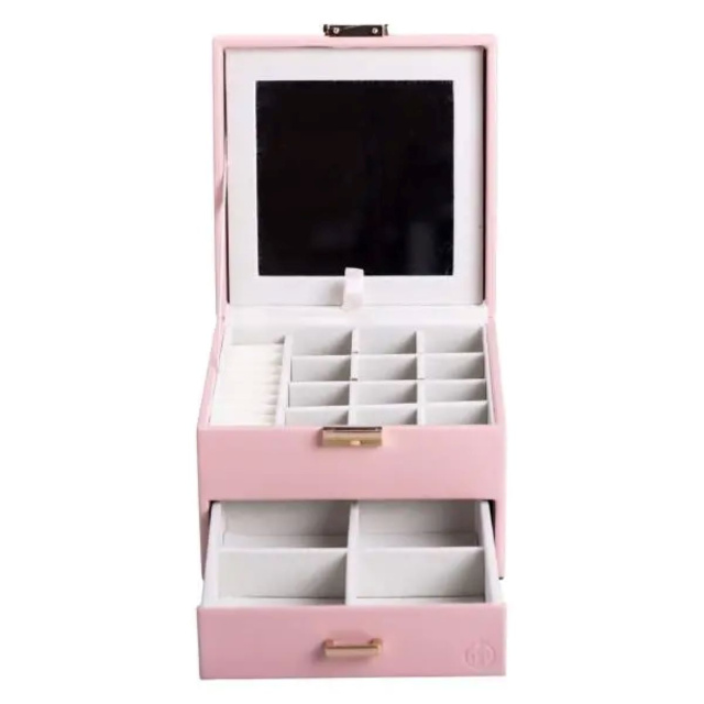Шкатулка для украшений из эко кожи, 2 яруса – идеальный органайзер для бережного хранения ваших ювелирных изделий. Компактный и функциональный дизайн с размерами 16×16×12 см обеспечивает удобство использования и легкость хранения. Выполненная из качественной эко кожи, эта шкатулка станет стильным дополнением любого интерьера, сочетая в себе практичность и элегантность. Основные характеристики органайзера для хранения бижутерии размеры шкатулки для украшений 16×16×12 см; количество ярусов - 2 шт; количество отсеков - 17 шт; материал корпуса - экокожа; внутреннее покрытие - велюр; зеркало в комплекте. Шкатулка оборудована двумя вместительными ярусами, предлагающими 17 разнообразных отсеков. Это позволяет аккуратно разместить кольца, серьги, цепочки, браслеты и другие украшения, предотвращая их повреждения и спутывание. Внутреннее покрытие из мягкого велюра обеспечивает дополнительную защиту от царапин и повреждений. Основные преимущества шкатулки для украшений из эко кожи Экологичная кожа приятна на ощупь, долговечна и устойчива к внешним повреждениям, а велюровое покрытие внутри бережно хранит драгоценности и предотвращает появление царапин. Благодаря 17 отдельным отсекам и двум просторным ярусам, все украшения аккуратно размещены и всегда находятся под рукой. Современное исполнение и сдержанные цвета органично вписываются в любой интерьер, превращая органайзер в стильный элемент декора. Встроенное зеркало добавляет функциональности и облегчает выбор украшений. Отличное решение для подарка по любому поводу: День рождения, 8 марта, годовщина, День святого Валентина или Новый год. Дополнительным преимуществом модели является встроенное зеркало, удобное для примерки украшений и ухода за собой. Шкатулка из эко кожи отлично подходит в качестве подарка на любой праздник, а также будет полезным приобретением для личного использования. Купить шкатулку для ювелирных изделий можно с доставкой по всей Украине.