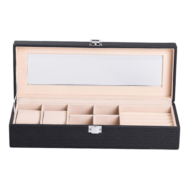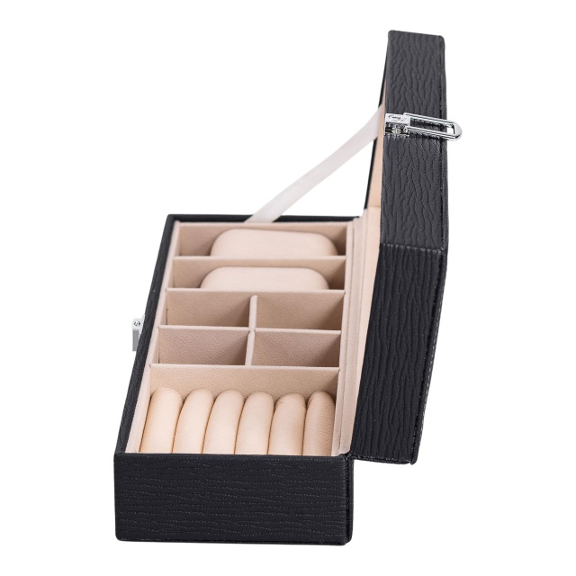 Шкатулка для украшений из эко кожи – это идеальный органайзер для бережного хранения ваших ювелирных изделий. Компактный и функциональный дизайн с размерами 31×11×8 см обеспечивает удобство использования и легкость хранения. Выполненная из качественной эко кожи, эта шкатулка станет стильным дополнением любого интерьера, сочетая в себе практичность и элегантность. Основные характеристики органайзера для хранения бижутерии размеры шкатулки для украшений 31×11×8 см; количество ярусов - 1 шт; количество отсеков - 7 шт; материал корпуса - экокожа; внутреннее покрытие - замша. Шкатулка оборудована 7 разнообразными отсеками. Это позволяет аккуратно разместить кольца, серьги, цепочки, браслеты и другие украшения, предотвращая их повреждения и спутывание. Внутреннее покрытие из мягкого замша обеспечивает дополнительную защиту от царапин и повреждений. Основные преимущества шкатулки для украшений из эко-кожи Экологичная кожа приятна на ощупь, долговечна и устойчива к внешним повреждениям, а замшевое покрытие внутри бережно хранит драгоценности и предотвращает появление царапин. Благодаря 7 отдельным отсекам, все украшения аккуратно размещены и всегда находятся под рукой. Современное исполнение и сдержанные цвета органично вписываются в любой интерьер, превращая органайзер в стильный элемент декора. Качественная застежка обеспечивает сохранность и защиту ювелирных изделий от случайного открытия и потери. Отличное решение для подарка по любому поводу: День рождения, 8 марта, годовщина, День святого Валентина или Новый год. Надежная застежка гарантирует безопасное хранение ваших драгоценностей, исключая случайное открытие шкатулки. Шкатулка из эко кожи отлично подходит в качестве подарка на любой праздник, а также будет полезным приобретением для личного использования. Купить шкатулку для ювелирных изделий можно с доставкой по всей Украине.