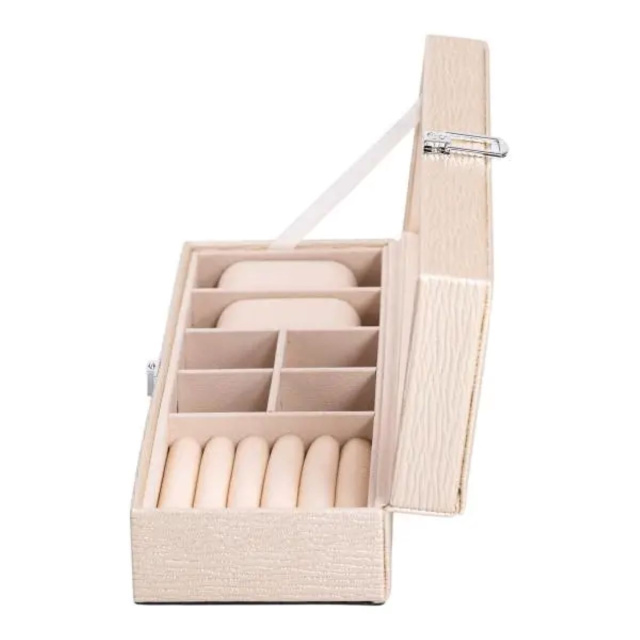 Шкатулка для украшений из эко кожи – это идеальный органайзер для бережного хранения ваших ювелирных изделий. Компактный и функциональный дизайн с размерами 31×11×8 см обеспечивает удобство использования и легкость хранения. Выполненная из качественной эко кожи, эта шкатулка станет стильным дополнением любого интерьера, сочетая в себе практичность и элегантность. Основные характеристики органайзера для хранения бижутерии размеры шкатулки для украшений 31×11×8 см; количество ярусов - 1 шт; количество отсеков - 7 шт; материал корпуса - экокожа; внутреннее покрытие - замша. Шкатулка оборудована 7 разнообразными отсеками. Это позволяет аккуратно разместить кольца, серьги, цепочки, браслеты и другие украшения, предотвращая их повреждения и спутывание. Внутреннее покрытие из мягкого замша обеспечивает дополнительную защиту от царапин и повреждений. Основные преимущества шкатулки для украшений из эко-кожи Экологичная кожа приятна на ощупь, долговечна и устойчива к внешним повреждениям, а замшевое покрытие внутри бережно хранит драгоценности и предотвращает появление царапин. Благодаря 7 отдельным отсекам, все украшения аккуратно размещены и всегда находятся под рукой. Современное исполнение и сдержанные цвета органично вписываются в любой интерьер, превращая органайзер в стильный элемент декора. Качественная застежка обеспечивает сохранность и защиту ювелирных изделий от случайного открытия и потери. Отличное решение для подарка по любому поводу: День рождения, 8 марта, годовщина, День святого Валентина или Новый год. Надежная застежка гарантирует безопасное хранение ваших драгоценностей, исключая случайное открытие шкатулки. Шкатулка из эко кожи отлично подходит в качестве подарка на любой праздник, а также будет полезным приобретением для личного использования. Купить шкатулку для ювелирных изделий можно с доставкой по всей Украине.
