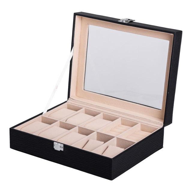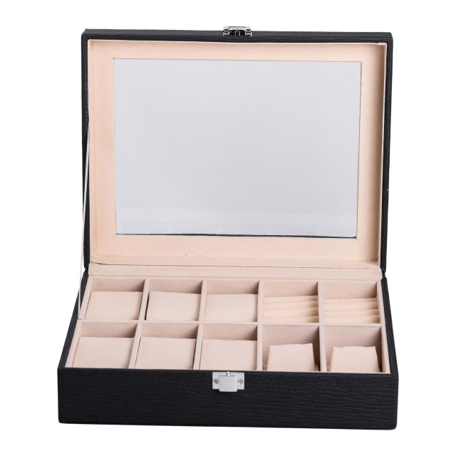 Шкатулка для украшений из эко кожи – идеальный органайзер для бережного хранения ваших ювелирных изделий. Компактный и функциональный дизайн с размерами 25.5×20×7.5 см обеспечивает удобство использования и легкость хранения. Выполненная из качественной эко кожи, эта шкатулка станет стильным дополнением любого интерьера, сочетая в себе практичность и элегантность. Основные характеристики органайзера для хранения бижутерии размеры шкатулки для украшений 25.5×20×7.5 см; количество ярусов - 1 шт; количество отсеков - 10 шт; материал корпуса - экокожа; внутреннее покрытие - велюр; зеркало в комплекте. Шкатулка оборудована вместительным ярусом, предлагающими 10 разнообразных отсеков. Это позволяет аккуратно разместить кольца, серьги, цепочки, браслеты и другие украшения, предотвращая их повреждения и спутывание. Внутреннее покрытие из мягкого велюра обеспечивает дополнительную защиту от царапин и повреждений. Основные преимущества шкатулки для украшений из эко-кожи Экологичная кожа приятна на ощупь, долговечна и устойчива к внешним повреждениям, а велюровое покрытие внутри бережно хранит драгоценности и предотвращает появление царапин. Благодаря 10 отдельным отсекам и двум просторным ярусам, все украшения аккуратно размещены и всегда находятся под рукой. Современное исполнение и сдержанные цвета органично вписываются в любой интерьер, превращая органайзер в стильный элемент декора. Встроенное зеркало добавляет функциональности и облегчает выбор украшений. Качественная защелка обеспечивает сохранность и защиту ювелирных изделий от случайного открытия и потери. Отличное решение для подарка по любому поводу: День рождения, 8 марта, годовщина, День святого Валентина или Новый год. Дополнительным преимуществом модели является встроенное зеркало, удобное для примерки украшений и ухода за собой. Надежная защелка гарантирует безопасное хранение ваших драгоценностей, исключая случайное открытие шкатулки. Шкатулка из эко кожи отлично подходит в качестве подарка на любой праздник, а также будет полезным приобретением для личного использования. Купить шкатулку для ювелирных изделий можно с доставкой по всей Украине.