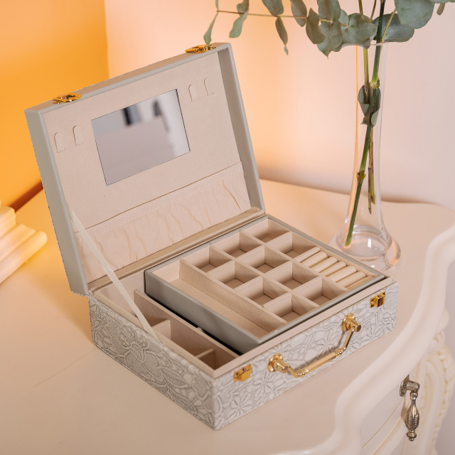Шкатулка для украшений из эко кожи 2 яруса с зеркалом органайзер для ювелирных изделий HP-5-15G