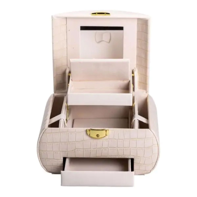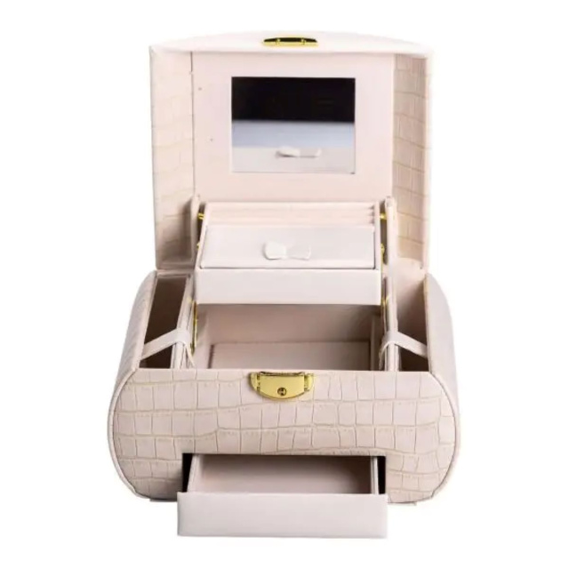 Шкатулка для украшений из эко кожи, 3 яруса – идеальный органайзер для бережного хранения ваших ювелирных изделий. Компактный и функциональный дизайн с размерами 24×17×18 см обеспечивает удобство использования и легкость хранения. Выполненная из качественной эко кожи, эта шкатулка станет стильным дополнением любого интерьера, сочетая в себе практичность и элегантность, а замок обеспечит сохранность Ваших украшений. Основные характеристики органайзера для хранения бижутерии размеры шкатулки для украшений 24×17×18 см; количество ярусов - 3 шт; количество отсеков - 6 шт; материал корпуса - экокожа; внутреннее покрытие - велюр; зеркало в комплекте. Шкатулка оборудована тремя вместительными ярусами, предлагающими 6 разнообразных отсеков. Это позволяет аккуратно разместить кольца, серьги, цепочки, браслеты и другие украшения, предотвращая их повреждения и спутывание. Внутреннее покрытие из мягкого велюра обеспечивает дополнительную защиту от царапин и повреждений. Основные преимущества шкатулки для украшений из эко-кожи Экологичная кожа приятна на ощупь, долговечна и устойчива к внешним повреждениям, а велюровое покрытие внутри бережно хранит драгоценности и предотвращает появление царапин. Благодаря 6 отдельным отсекам и трем просторным ярусам, все украшения аккуратно размещены и всегда находятся под рукой. Современное исполнение и сдержанные цвета органично вписываются в любой интерьер, превращая органайзер в стильный элемент декора. Встроенное зеркало добавляет функциональности и облегчает выбор украшений. Качественный замок обеспечивает сохранность и защиту ювелирных изделий от случайного открытия и потери. Отличное решение для подарка по любому поводу: День рождения, 8 марта, годовщина, День святого Валентина или Новый год. Дополнительным преимуществом модели является встроенное зеркало, удобное для примерки украшений и ухода за собой. Надежная застежка гарантирует безопасное хранение ваших драгоценностей, исключая случайное открытие шкатулки. Шкатулка из экокожа отлично подходит в качестве подарка на любой праздник, а также будет полезным приобретением для личного использования. Купить шкатулку для ювелирных изделий можно с доставкой по всей Украине.