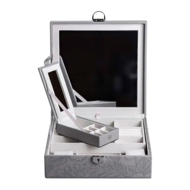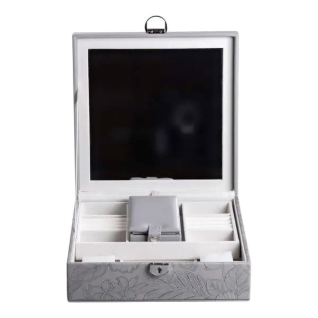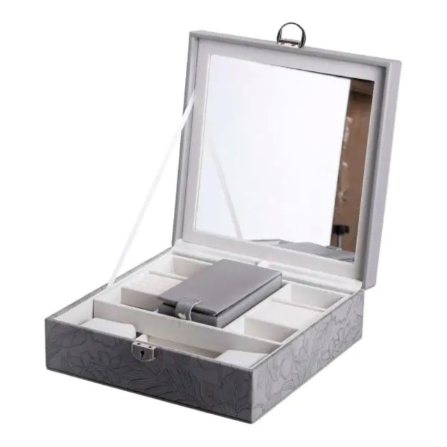 Шкатулка для украшений из эко кожи, 2 яруса – идеальный органайзер для бережного хранения ваших ювелирных изделий. Компактный и функциональный дизайн с размерами 25×25×8.5 см обеспечивает удобство использования и легкость хранения. Выполненная из качественной эко кожи, эта шкатулка станет стильным дополнением любого интерьера, сочетая в себе практичность и элегантность, а замок обеспечит сохранность Ваших украшений. Основные характеристики органайзера для хранения бижутерии размеры шкатулки для украшений 25×25×8.5 см; количество ярусов - 2 шт; количество отсеков - 17 шт; материал корпуса - экокожа; внутреннее покрытие - велюр; зеркало в комплекте. Шкатулка оборудована двумя вместительными ярусами, предлагающими 17 разнообразных отсеков. Это позволяет аккуратно разместить кольца, серьги, цепочки, браслеты и другие украшения, предотвращая их повреждения и спутывание. Внутреннее покрытие из мягкого велюра обеспечивает дополнительную защиту от царапин и повреждений. Основные преимущества шкатулки для украшений из эко-кожи Экологичная кожа приятна на ощупь, долговечна и устойчива к внешним повреждениям, а велюровое покрытие внутри бережно хранит драгоценности и предотвращает появление царапин. Благодаря 17 отдельным отсекам и двум просторным ярусам, все украшения аккуратно размещены и всегда находятся под рукой. Современное исполнение и сдержанные цвета органично вписываются в любой интерьер, превращая органайзер в стильный элемент декора. Встроенное зеркало добавляет функциональности и облегчает выбор украшений. Качественный замок обеспечивает сохранность и защиту ювелирных изделий от случайного открытия и потери. Отличное решение для подарка по любому поводу: День рождения, 8 марта, годовщина, День святого Валентина или Новый год. Дополнительным преимуществом модели является встроенное зеркало, удобное для примерки украшений и ухода за собой. Надежный замок гарантирует безопасное хранение ваших драгоценностей, исключая случайное открытие шкатулки. Шкатулка из эко кожи отлично подходит в качестве подарка на любой праздник, а также будет полезным приобретением для личного использования. Купить шкатулку для ювелирных изделий можно с доставкой по всей Украине.