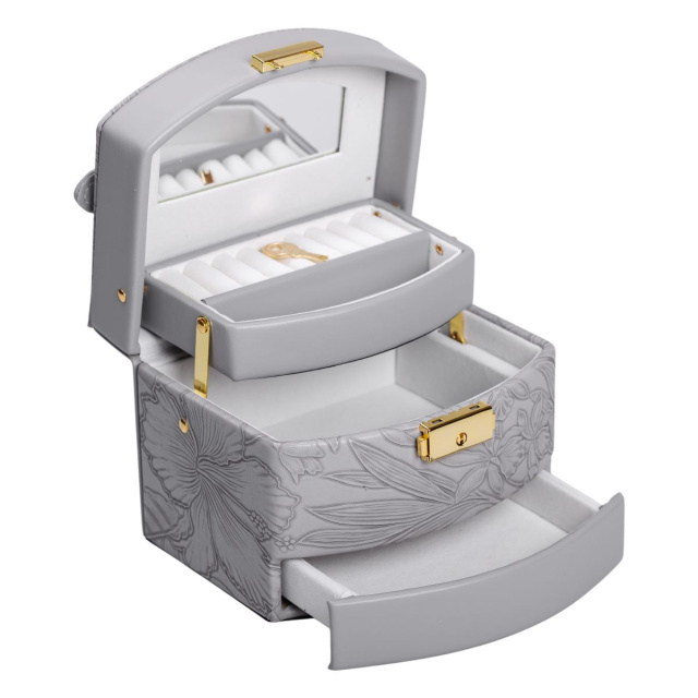 Шкатулка для украшений из эко кожи 3 яруса с замком органайзер для ювелирных изделий HP-5-23G