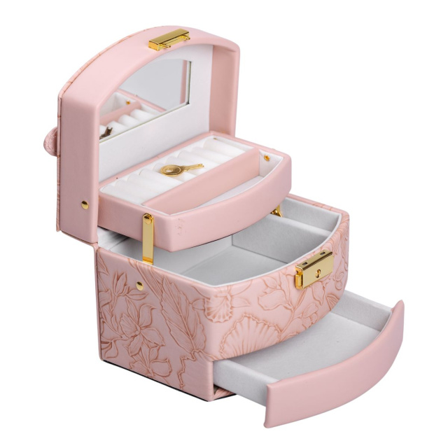 Шкатулка для украшений из эко кожи 3 яруса с замком органайзер для ювелирных изделий HP-5-23P