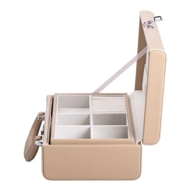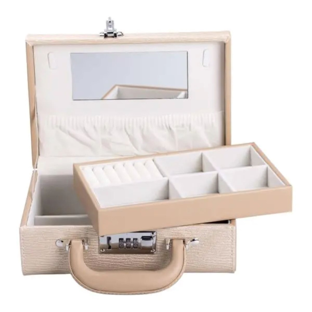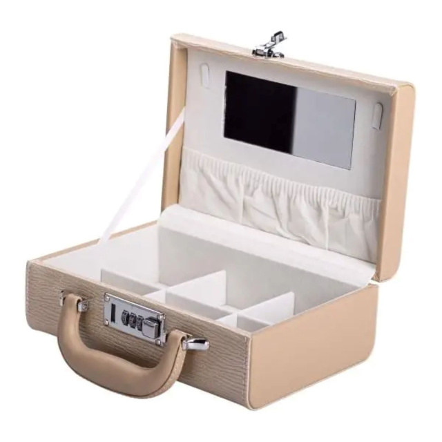 Шкатулка для украшений из эко кожи, 2 яруса – идеальный органайзер для бережного хранения ваших ювелирных изделий. Компактный и функциональный дизайн с размерами 24×16×9.5 см обеспечивает удобство использования и легкость хранения. Выполненная из качественной эко кожи, эта шкатулка станет стильным дополнением любого интерьера, сочетая в себе практичность и элегантность, а кодовый замок обеспечит сохранность Ваших украшений. Основные характеристики органайзера для хранения бижутерии размеры шкатулки для украшений 24×16×9.5 см; количество ярусов - 2 шт; количество отсеков - 12 шт; материал корпуса - экокожа; внутреннее покрытие - велюр; зеркало в комплекте. Шкатулка оборудована двумя вместительными ярусами, предлагающими 12 разнообразных отсеков. Это позволяет аккуратно разместить кольца, серьги, цепочки, браслеты и другие украшения, предотвращая их повреждения и спутывание. Внутреннее покрытие из мягкого велюра обеспечивает дополнительную защиту от царапин и повреждений. Пароль в заводских настройках 0000 Основные преимущества шкатулки для украшений из эко-кожи Экологичная кожа приятна на ощупь, долговечна и устойчива к внешним повреждениям, а велюровое покрытие внутри бережно хранит драгоценности и предотвращает появление царапин. Благодаря 12 отдельным отсекам и двум просторным ярусам, все украшения аккуратно размещены и всегда находятся под рукой. Современное исполнение и сдержанные цвета органично вписываются в любой интерьер, превращая органайзер в стильный элемент декора. Встроенное зеркало добавляет функциональности и облегчает выбор украшений. Качественный замок обеспечивает сохранность и защиту ювелирных изделий от случайного открытия и потери. Отличное решение для подарка по любому поводу: День рождения, 8 марта, годовщина, День святого Валентина или Новый год. Дополнительным преимуществом модели является встроенное зеркало, удобное для примерки украшений и ухода за собой. Надежный замок гарантирует безопасное хранение ваших драгоценностей, исключая случайное открытие шкатулки. Шкатулка из эко кожи отлично подходит в качестве подарка на любой праздник, а также будет полезным приобретением для личного использования. Купить шкатулку для ювелирных изделий можно с доставкой по всей Украине.