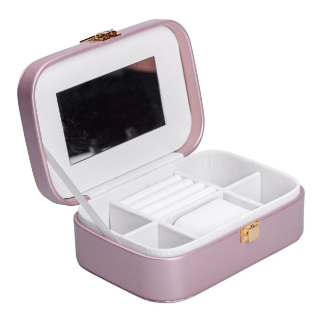 Шкатулка для украшений из эко кожи – идеальный органайзер для бережного хранения ваших ювелирных изделий. Компактный и функциональный дизайн с размерами 20×14×7 см обеспечивает удобство использования и легкость хранения. Выполненная из качественной эко кожи, эта шкатулка станет стильным дополнением любого интерьера, сочетая в себе практичность и элегантность, а защелка обеспечит сохранность Ваших украшений. Основные характеристики органайзера для хранения бижутерии размеры шкатулки для украшений 20×14×7 см; количество ярусов - 1 шт; количество отсеков - 6 шт; материал корпуса - экокожа; внутреннее покрытие - велюр; зеркало в комплекте. Шкатулка оборудована одним вместительным ярусом, предлагающими 6 разнообразных отсеков. Это позволяет аккуратно разместить кольца, серьги, цепочки, браслеты и другие украшения, предотвращая их повреждения и спутывание. Внутреннее покрытие из мягкого велюра обеспечивает дополнительную защиту от царапин и повреждений. Основные преимущества шкатулки для украшений из эко-кожи Экологичная кожа приятна на ощупь, долговечна и устойчива к внешним повреждениям, а велюровое покрытие внутри бережно хранит драгоценности и предотвращает появление царапин. Благодаря 6 отдельным отсекам, все украшения аккуратно размещены и всегда находятся под рукой. Современное исполнение и сдержанные цвета органично вписываются в любой интерьер, превращая органайзер в стильный элемент декора. Встроенное зеркало добавляет функциональности и облегчает выбор украшений. Качественная защелка обеспечивает сохранность и защиту ювелирных изделий от случайного открытия и потери. Отличное решение для подарка по любому поводу: День рождения, 8 марта, годовщина, День святого Валентина или Новый год. Дополнительным преимуществом модели является встроенное зеркало, удобное для примерки украшений и ухода за собой. Надежная застежка гарантирует безопасное хранение ваших драгоценностей, исключая случайное открытие шкатулки. Шкатулка из экокожа отлично подходит в качестве подарка на любой праздник, а также будет полезным приобретением для личного использования. Купить шкатулку для ювелирных изделий можно с доставкой по всей Украине.