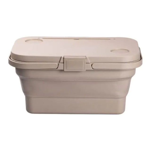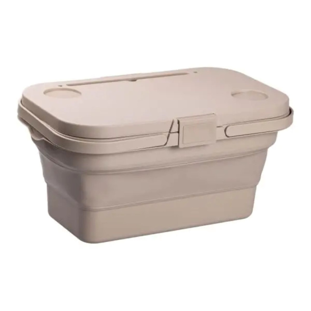 Корзина со складным столом — универсальное и практичное решение для отдыха на природе. После использования ее можно легко сложить до компактного размера. Корзина идеально подходит для переноски вещей во время пикников, кемпинга, барбекю и других мероприятий на свежем воздухе. В нее можно налить ледяную воду для охлаждения напитков или использовать для мытья овощей и фруктов. Основные характеристики: Материал: пластик; Размер в сложенном состоянии: 44х26х9 см; Размер в разложенном состоянии: 44х26х23 см; Размер столика: 44.8х26х14 см; Объем: 13-15 л. С объемом до 15 литров, корзина вмещает множество необходимых предметов. А если снять крышку, она легко превращается в стол на ножках, что делает ее еще более удобной. В комплекте также предусмотрены два держатель для напитков, обеспечивающий их устойчивость.
