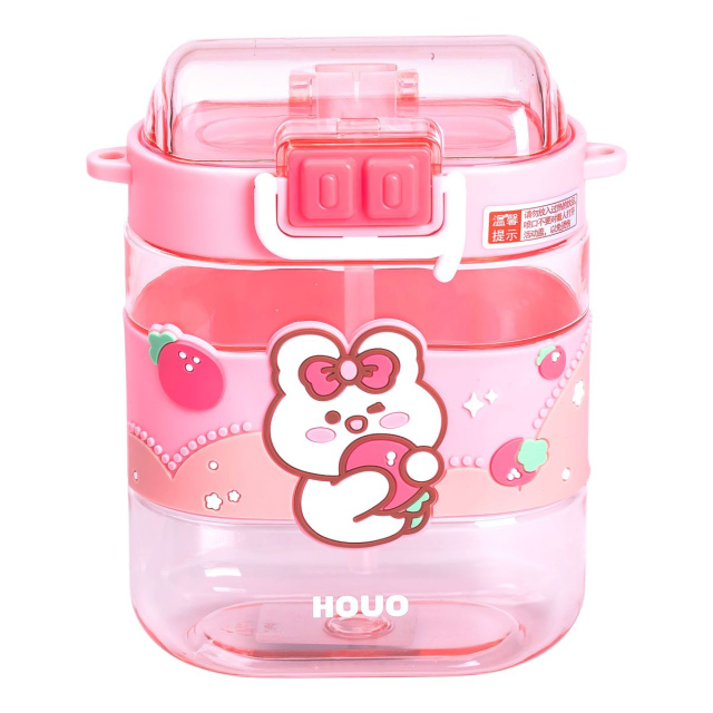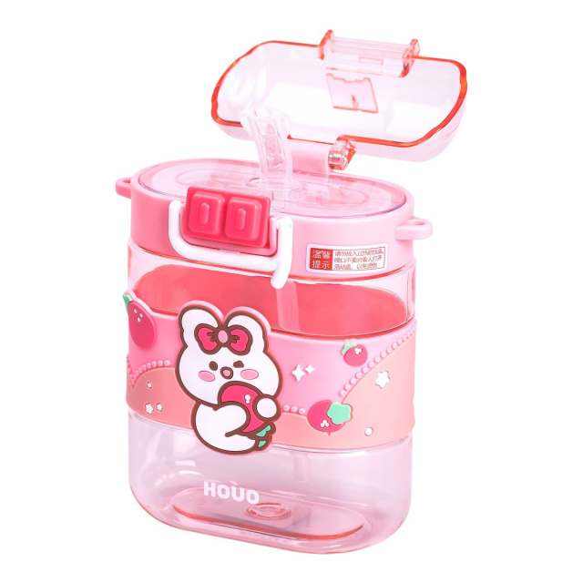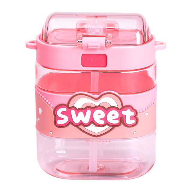 Бутылка для воды детская с трубочкой и ремешком 560 мл бутылочка для питья в школу 15 см Розовая HP-14-36P