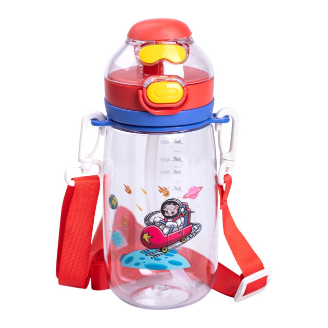 Бутылка для воды детская 550 мл с ремешком и трубочкой для спорта и школы HP-14-45R
