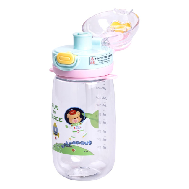 Детская бутылка для воды 550 мл – стильная, качественная и удобная в использовании. Она непременно станет вашим постоянным спутником и любимым аксессуаром. Бутылочку удобно брать на прогулки, тренировки и в школу. Основные характеристики бутылочки Объем: 550 мл; Высота: 20 см; Диаметр: 7 см; Дополнительные функции: ремешок, ручка, трубочка, крышка откидная. Основные преимущества бутылки Изготовлена из качественного и безопасного пищевого материала – поликарбоната. Бутылка оснащена удобной крышкой с кнопочным механизмом, что позволяет легко открывать и закрывать ее одной рукой. Внутри крышки имеется герметичная силиконовая прокладка для предотвращения протекания. В комплект входит ремешок, удобный для переноски и фиксации бутылочки на сумке или рюкзаке. Многоразовая бутылка для воды – это универсальный и практичный аксессуар, который идеально подойдет для любителей активного отдыха, путешественников и просто тех, кто хочет всегда иметь под рукой любимый напиток.