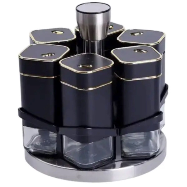 Набор для специй карусель на подставке содержит 6 баночек, позволяя хранить различные специи, травы и приправы. Набор для приправ станет идеальным дополнением к вашей кухне, предоставляя большие возможности хранения и удобства в приготовлении. Основные характеристики карусели для специй Количество баночек в наборе: 6 шт; Объем баночек: 120 мл; Размер набора: 15×15×15.5 см; Высота баночек: 10.5 см; Материал баночек: стекло, пластик; Материал крышек: металл; Материал подставки: металлю Набор емкостей для специй на подставке не только обеспечит вас всеми необходимыми приправами, но и придаст вашей кухне стильный и организованный вид. Создавайте прекрасные блюда с легкостью, имея все необходимое под рукой.