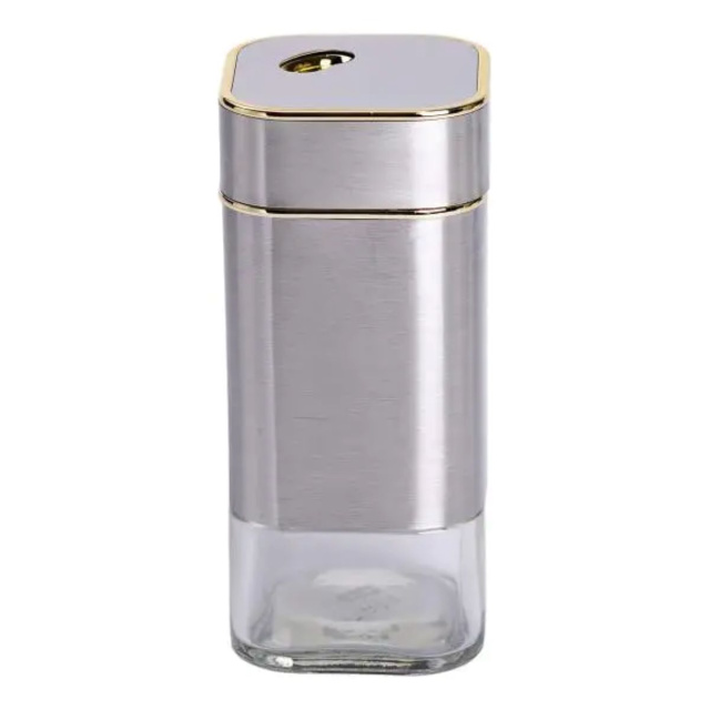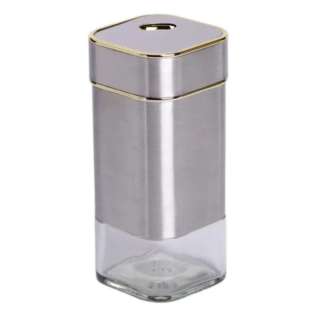 Емкость для специй изготовлена из стекла и металла, которые не впитывают запахи и прекрасно сохраняют свежесть и вкусовые качества специй. Простой дизайн баночки украсит любую кухню. Основные характеристики баночки для приправ Размер баночки: 4.5х4.5х10.5 см; Объем емкости: 120 мл; Материал емкости: стекло, металл; Материал крышки: металл. Емкость для специй сохраняет прекрасный внешний вид даже после многолетнего использования.