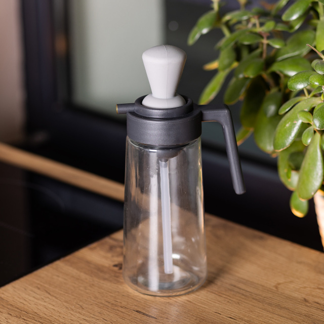 Бутылка для масла объемом 300 мл – стильный и функциональный аксессуар, который станет незаменимым помощником на кухне. Благодаря изящному дизайну бутылка отлично впишется как в домашний интерьер, так и в профессиональное кухонное пространство. Основные характеристики: Объем: 550 мл; Высота: 22 см; Диаметр: 6 см; Материал бутылки: стекло, пластик. Герметичная конструкция сохраняет свежесть продуктов и предотвращает попадание воздуха и посторонних запахов. Компактный размер и эргономичная форма делают бутылку легкой в использовании и хранении. Этот аксессуар отлично подходит для подачи на стол, организации пространства на кухне или в кафе. Бутылка для масла и уксуса станет не только практичным, но и стильным дополнением к вашей столовой посуде.