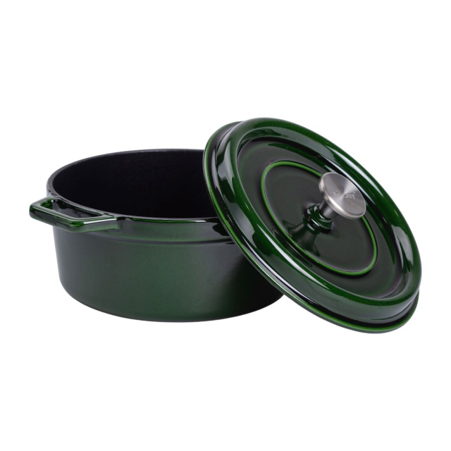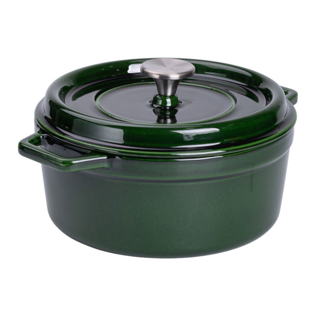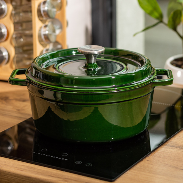 Чугунная кастрюля с эмалированным покрытием, 3.5 л – надежная и стильная посуда для запекания, тушения и длительного томления. Чугунная основа равномерно распределяет тепло и долго сохраняет его, обеспечивая идеальные условия для приготовления насыщенных и ароматных блюд. Основные характеристики: Объем: 3.5 л; Диаметр: 24 см; Диаметр дна: 19 см; Высота: 16 см; Высота кастрюли без крышки: 10.5 см; Толщина: 5 мм; Материал: чугун; Покрытие: эмаль; Тип крепления ручек: литий; Тип плиты: все типы. Приемущества: Эмалированное покрытие защищает от окисления, предотвращает пригорание и упрощает уход. Чугунная конструкция сохраняет тепло дольше, обеспечивая равномерное приготовление без резких перепадов температуры. Диаметр 24 см обеспечивает оптимальную площадь нагрева, удобную для приготовления разнообразных блюд. Подходит для всех типов плит: газовых, электрических, индукционных, а также для использования в духовке. Прочные литые ручки удобны для переноски и устойчивы к высоким температурам. Классический дизайн и функциональность делают эту кастрюлю незаменимой на кухне, помогая создавать блюда ресторанного уровня в домашних условиях.